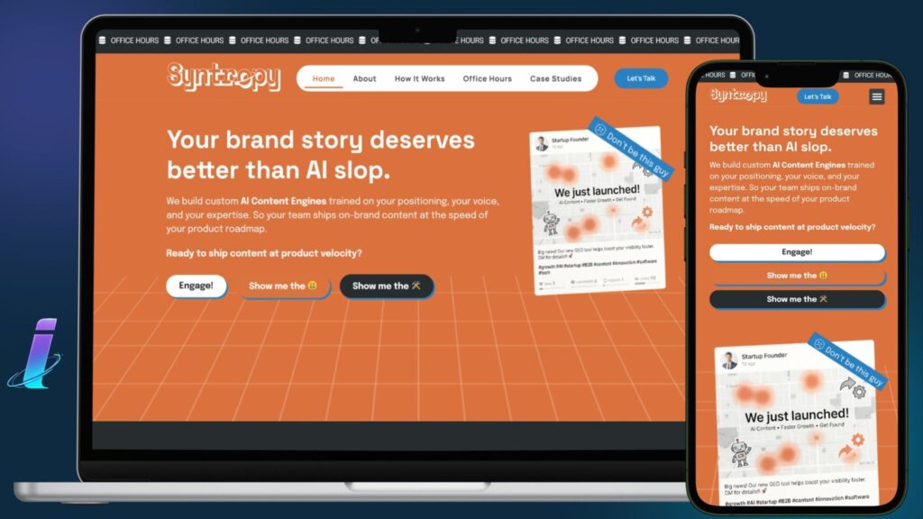 Designed and developed a high-conversion AI marketing website for Syntropy, focused on custom AI content engines for B2B SaaS teams.