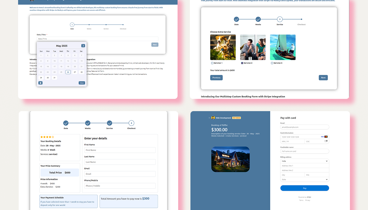 Crafted a sleek booking platform with seamless Stripe integration, enhancing user experience and payment efficiency.